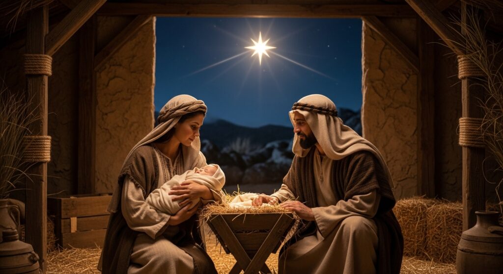 Step into a scene that stirs the soul and awakens the wonder of the season. Journey back in time and witness the Christmas story come alive beneath winter’s starlit sky.